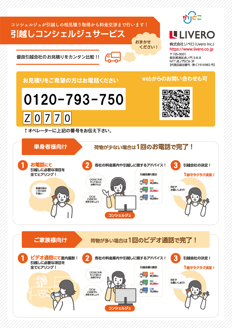リベロのコンシェルジュが、お客様に代わり引越しの相見積もり取得から料金交渉まで行います