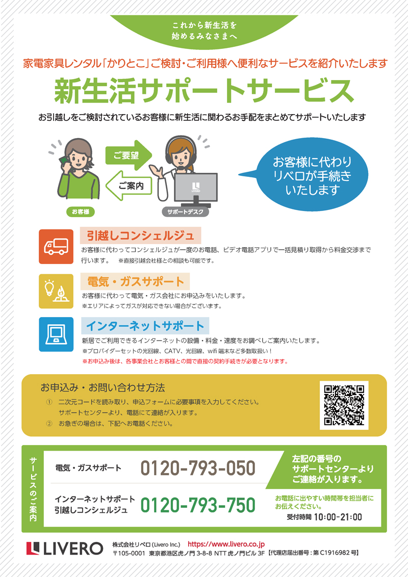 当社では、家電家具レンタルをご検討・ご利用いただいたお客様に向けて、引越し見積もりサービス・新生活サポートサービスをご紹介しております。